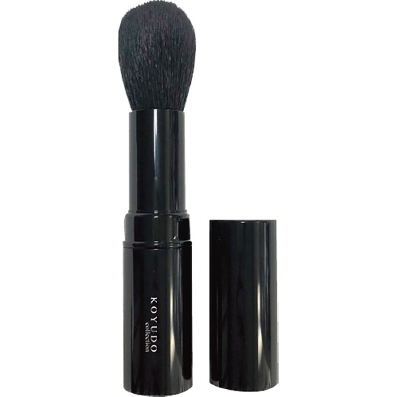 携帯性に優れた収納式チークブラシです。上質な山羊毛(粗光峰)を使用しているので、肌触りが非常に良いです。また、粉含みが良く程よいコシもあります。金具を回しながら毛先が出てくるので、毛先の長さで弾力調整が可能です。