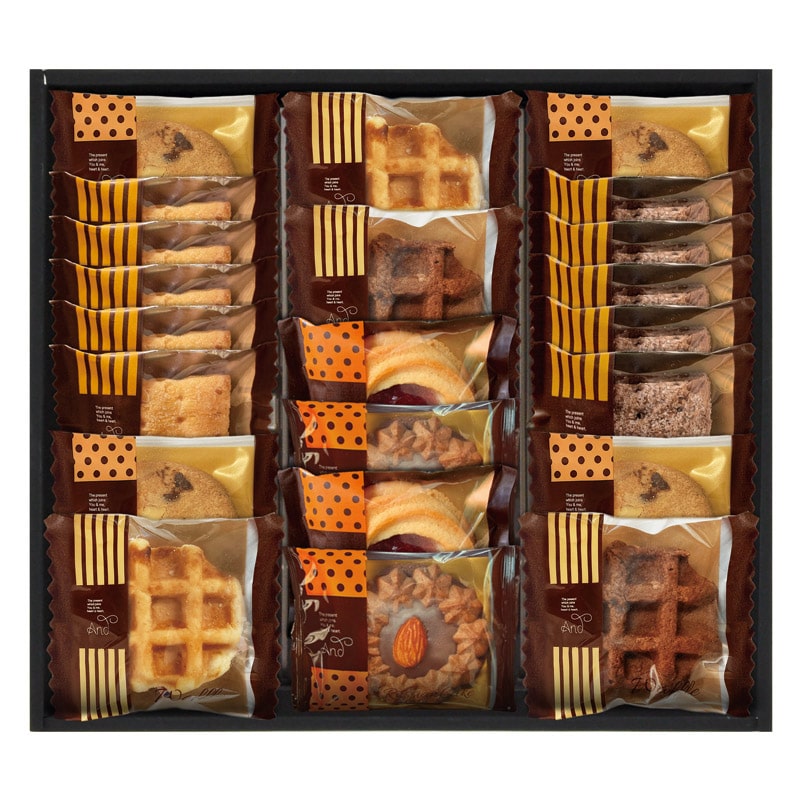 ・内容:セット内容/スクエアパイ(プレーン・ショコラ)×各5、ナッツとチョコのざっくりクッキー×4、ロシアケーキ(ブルーベリーサン・チョコアーモンド)・ワッフル(プレーン・チョコ)×各2
