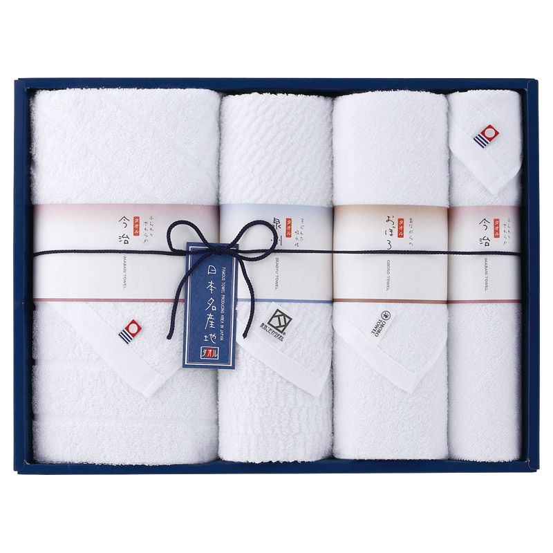 ・内容:セット内容/今治バスタオル(60×110cm)・泉州フェイスタオル(34×75cm)・おぼろフェイスタオル(34×80cm)・今治ウォッシュタオル(34×35cm)×各1