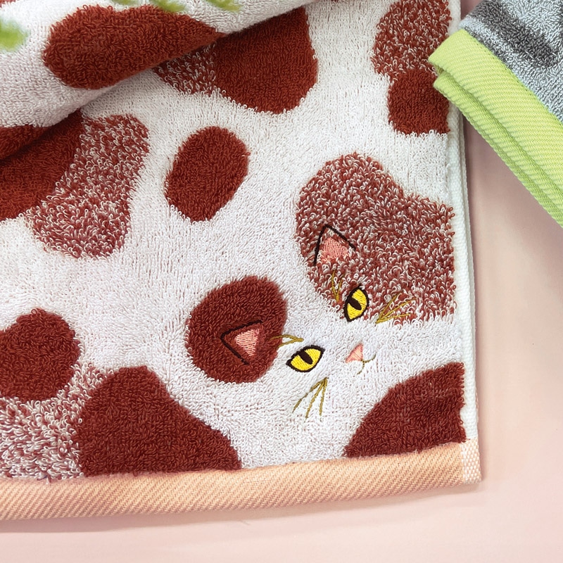 ニャンコの柄をデザインした、個性豊かなタオル。本場今治で、本物のような手触りを追及しました。お気に入りの「うちの子」と、毎日一緒に過ごしませんか。