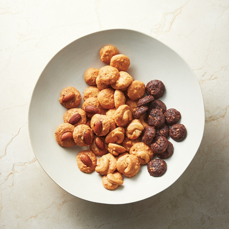 一粒一粒にナッツがぎっしり。卵白で仕立てた軽やかな生地に、ローストナッツをふんだんに練り込みサクサクした食感に焼き上げました。カリッとはじけるナッツが香ばしい豊かな味わいのクッキーは、モロゾフが誇るロングセラーです。