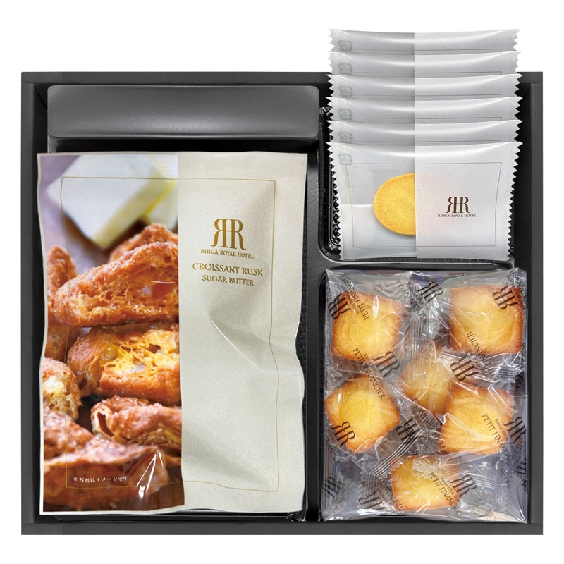 ・内容:クッキー(プレーンバニラ・チョコチップ)×各3、クロワッサンラスク(シュガーバター風味)・プチフィナンシェ(プレーン)(6個入)×各1
