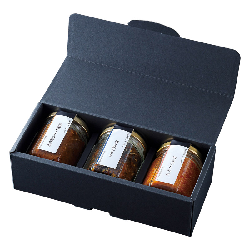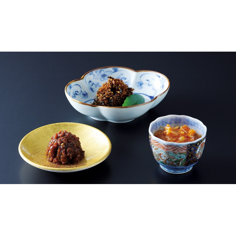 自然の恵みから生まれた3種のご馳走は、ご飯のお供に、酒の肴に、毎日の食卓で愉しんでいただける山海の幸の詰合せです。