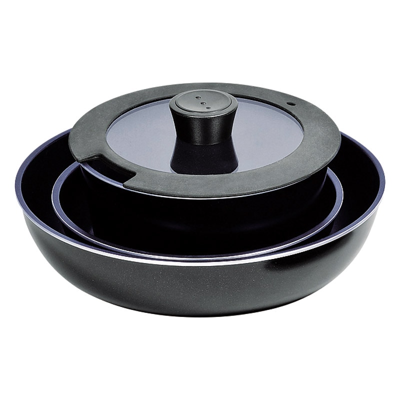 ・内容:マルチポット18cm(約φ190×85mm)・フライパン20cm(約φ215×50mm)・フライパン26cm(約270×60mm)・着脱ハンドル・ガラス蓋×各1