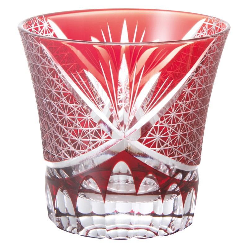 少し厚みのある色ガラスに丁寧にいくつものカットを重ね、美しい模様の切子グラスが生まれます。カットに映った光が屈折し、1本1本の線が放つ美しい輝きをお楽しみいただけます。カットの凹凸を手の中で感じることができ、手作りのあたたかさを感じていただくことができます。