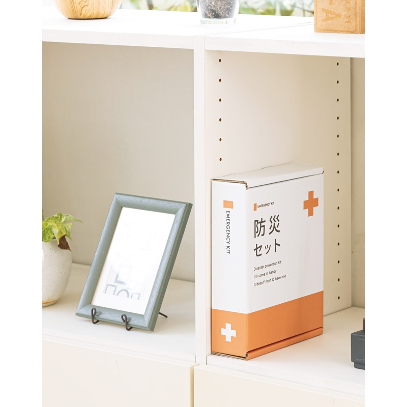 ・内容:水に流せるポケットティッシュ・携帯トイレ(1回分)・使い捨てカイロ・使い捨てマスク・防災ガイドメモ・非常用呼子笛(IDカード付き)・蓄光LEDライト・静音アルミブランケット・三角巾・軍手・非常用給水バッグ(3L)・絆創膏・綿棒セット×各1