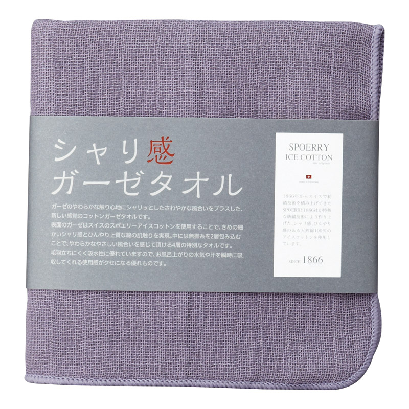 吸水性に優れ、清涼感があり、独特の使用感が楽しめます。スイスのスポエリーアイスコットンを使用した、夏場にお勧めのシャリ感ガーゼタオルです。