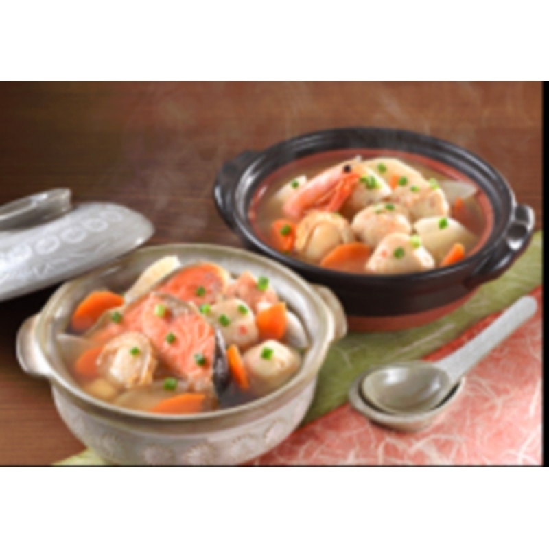 レンジで温めるだけですぐに食べられる、本格海鮮鍋の詰合せです。秋鮭、サーモントラウトを使用し出汁の風味を味わえる塩味仕立の鮭うしお汁とふわふわの食感と各具材の出汁がしみ込んだ2種のつみれが入ったお醤油ベースのつみれ鍋。お一人様分なのでいつでもお気軽にお召し上がりいただけます。
