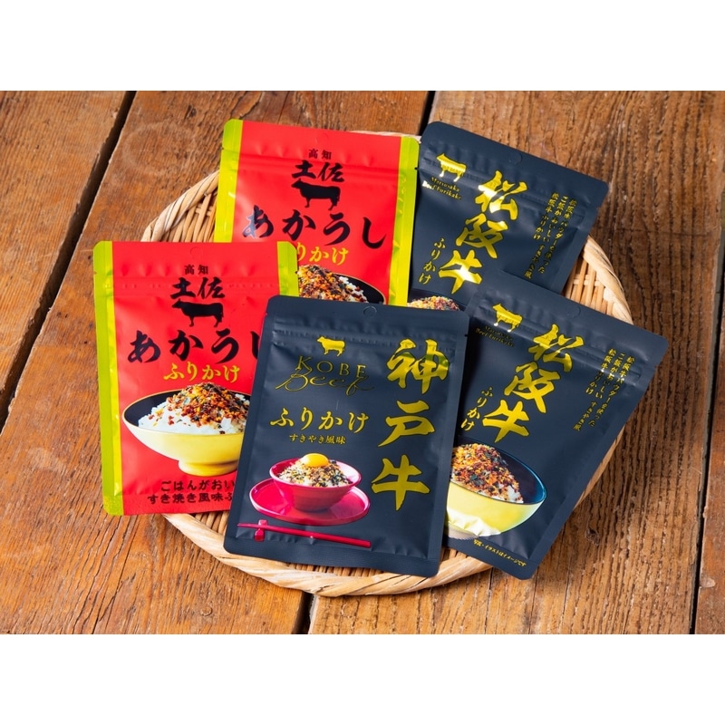 ・内容:和牛ふりかけ30g×5(松阪牛・土佐あかうし×各2、神戸牛×1)