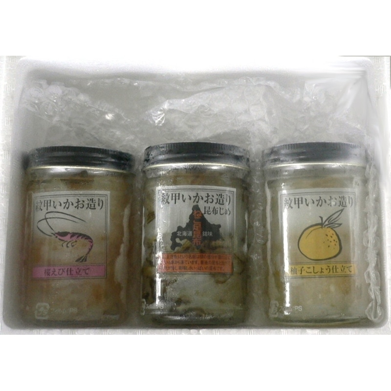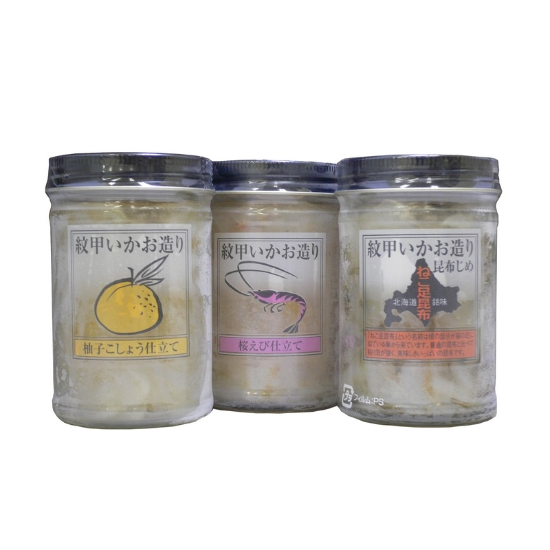 ・内容:紋甲いか昆布じめ150g×1、紋甲いか桜えび仕?て150g×1、紋甲いか柚?こしょう仕?て150g×1
