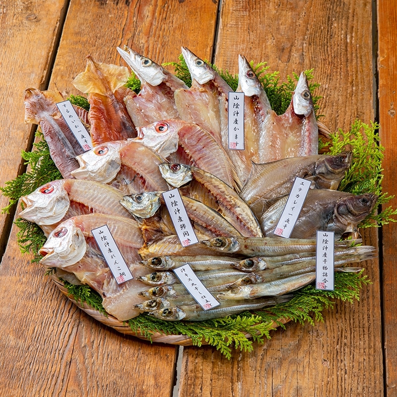 山陰沖の新鮮な魚の干物詰合せです。脂ののった旨味たっぷりの沖キス、柔らかく風味豊かな赤カマス、香ばしいするめいかを厳選。鮮度の良い魚を丁寧に干し上げた、贅沢な味わいをご堪能ください。