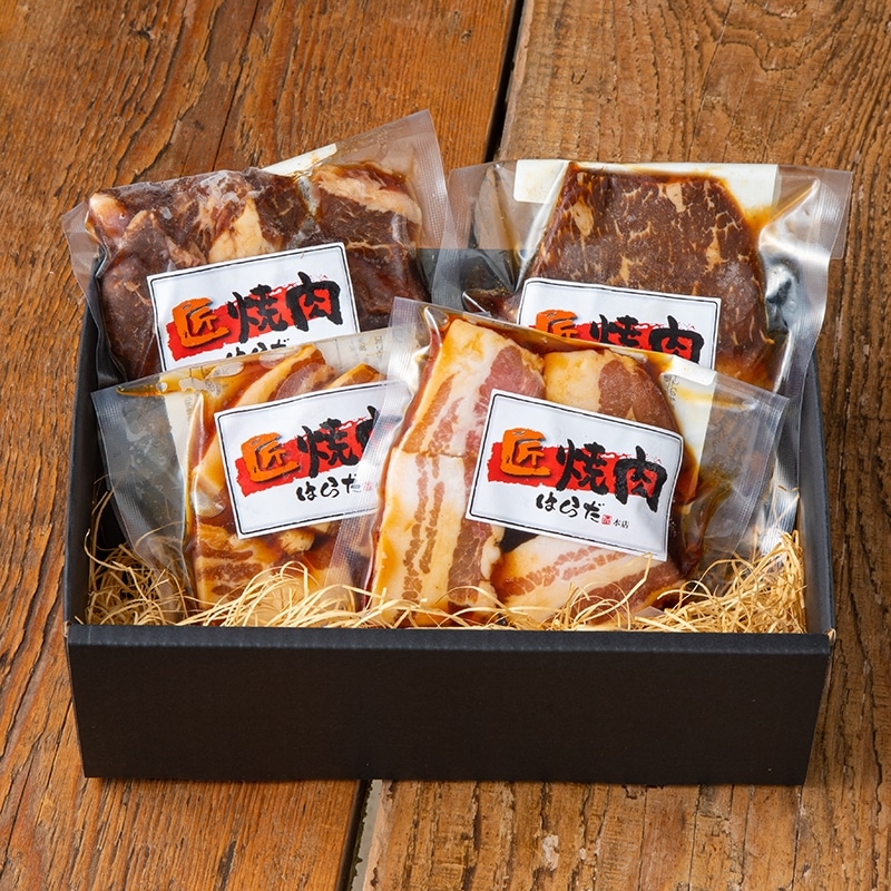 大阪八尾の焼肉はらだ本店でランチメニューで使用する国産牛のモモ肉・山形豚のバラ肉を、ご自宅で楽しんで頂けるようにお店のタレをあえて個パックにしました。BBQにも最適です。本格焼肉店の味をお試しください。