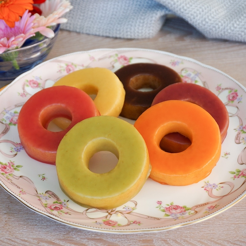 北海道産の小麦と生クリームを使用した柔らかな食感のバウムクーヘンにカラフルな餡をコーティングしました。小麦の風味と餡の程よい甘さ・フルーツの香りが楽しめます。