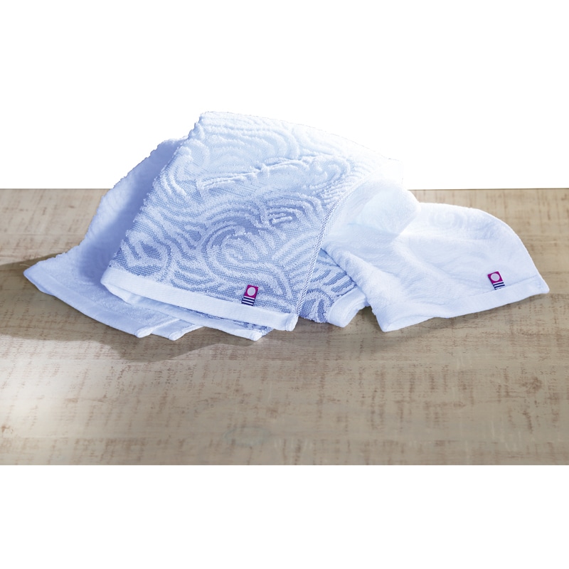 寄せては返す波のように、永遠への願いを込めて。 透き通るような青のグラデーションと白のコントラスト、打ち寄せる白波のように織られた波の模様が印象的。綿の柔らかさを生かしつつ、軽くさっぱりとした肌触りに織り上げられています。