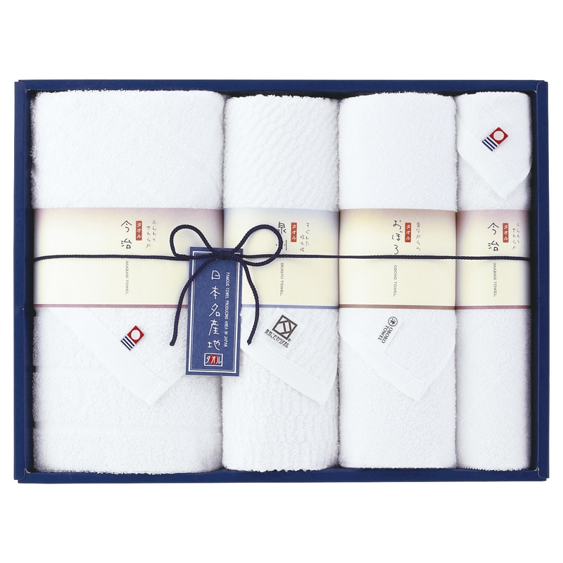 ・内容:バスタオル:60×110cm・ウォッシュタオル:34×35cm(今治)・フェイスタオル:34×75cm(泉州)・フェイスタオル:34×80cm(おぼろ)×各1