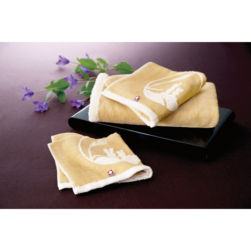 月夜に浮かぶ「うさぎ」を今治のガーゼ織ジャガード技術により表現しております。吸水・速乾性の良い今治タオルを感謝の気持ちを込めて贈ります。
