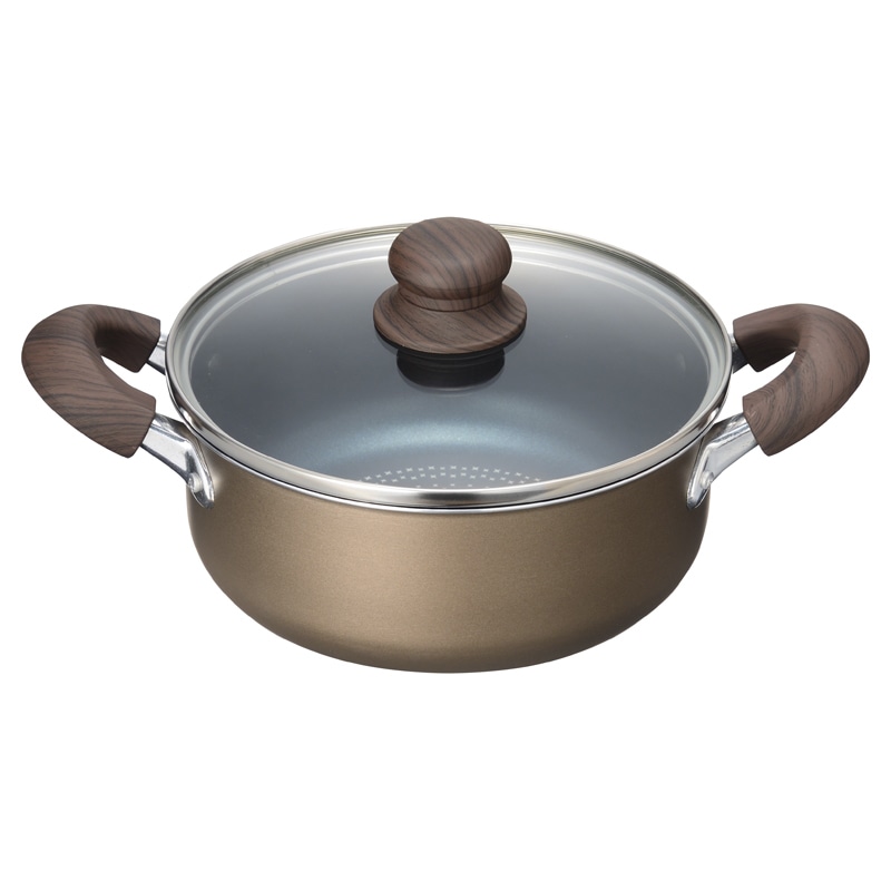 ・材質:本体:アルミニウム合金、内面:ふっ素樹脂加工(ダイヤモンドコート)、外面:焼付塗装、底面:ステンレス鋼、蓋:強化ガラス