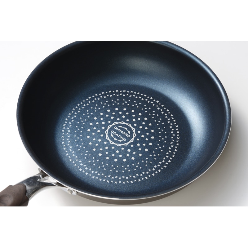 食材がこびりつきにくく、お手入れ簡単なダイヤモンドコートを施しております。 本体がアルミニウム合金でできているので軽く、扱いやすいです。