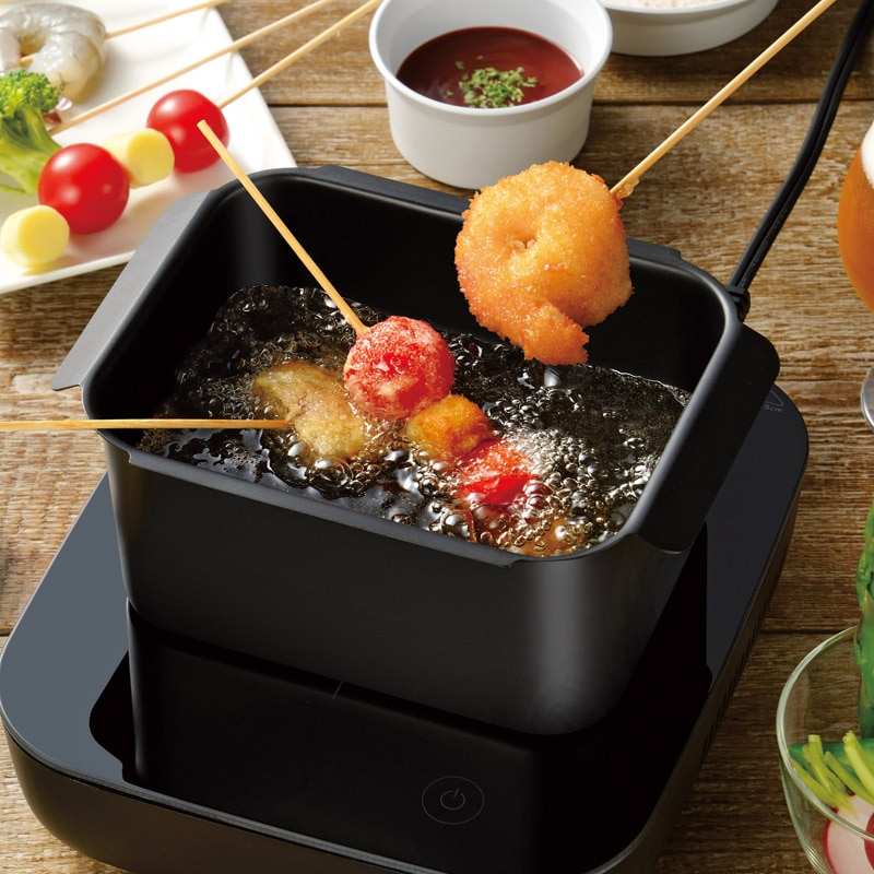 ミニサイズの角型揚げ鍋。卓上で使うにもぴったり。油の移し替えも角を使えばラクに注げます。