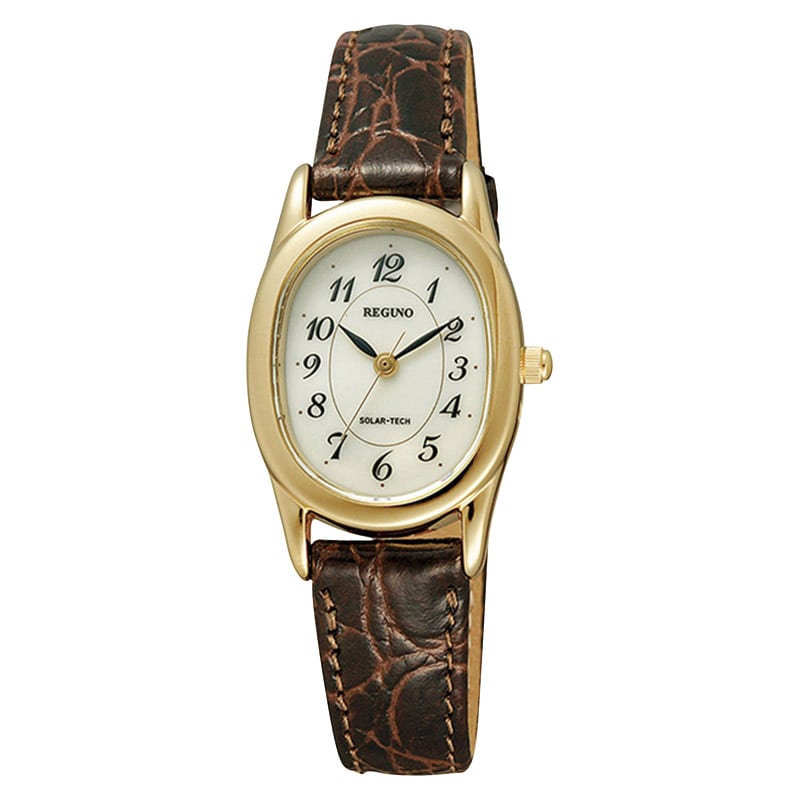 クラシックなオーバルケースがかわいらしい、定期的な電池交換不要のソーラーテックのファッションウォッチ。