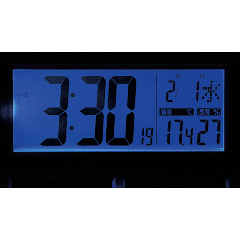 ソーラー電源+補助電池タイプの電波めざまし時計。