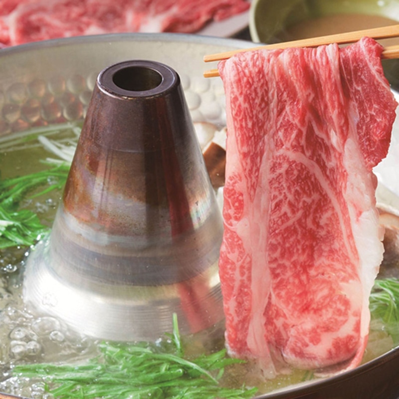 とろけるような食感、濃厚な味わいの松阪牛肩ロースをさっとくぐらせぎゅっとうま味を閉じ込めたしゃぶしゃぶのお肉を今半のポン酢とごまだれで食べ比べてお召し上がりください。