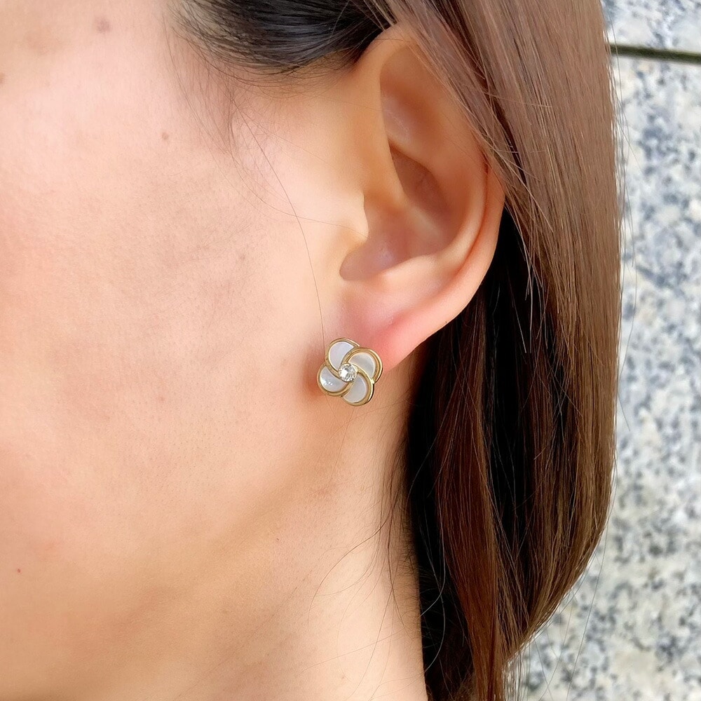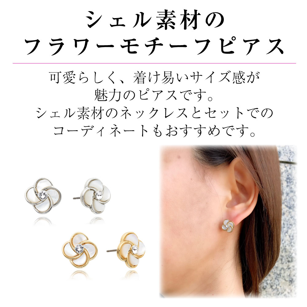 ◆Acce Garden◆シェル素材のフラワーモチーフピアス。可愛らしく、着け易いサイズ感が魅力のピアスです。シェル素材のネックレスとセットでのコーディネートもおすすめです。