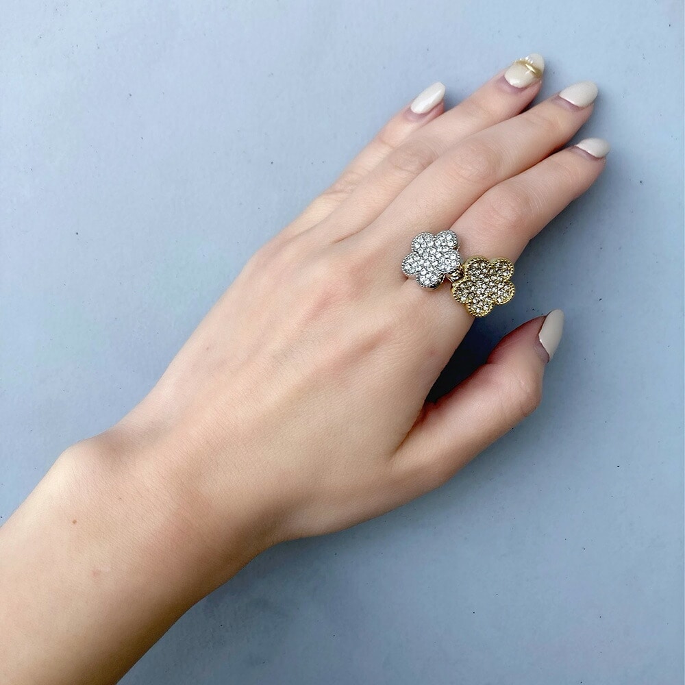 ジュエリーらしいラグジュアリーなパヴェも、愛らしいデザインでカジュアルにもお使いいただけます。単体で手元を華やかにしてくれるアイテムです。お手持ちのジュエリーを重ね付けをして、コーディネートを楽しむこともできます。