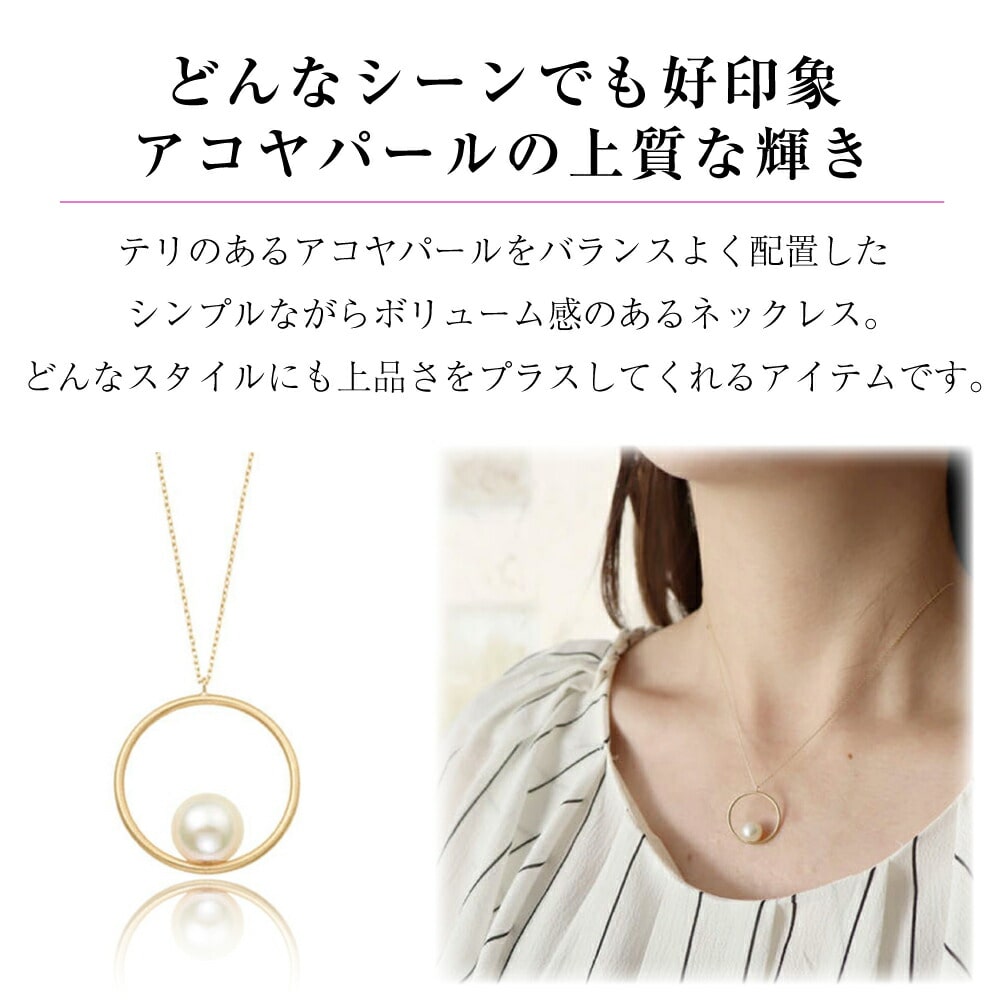 テリのあるアコヤパールをバランスよく配置した、シンプルながらボリューム感のあるネックレス。どんなスタイルにも上品さをプラスしてくれるアイテムです。