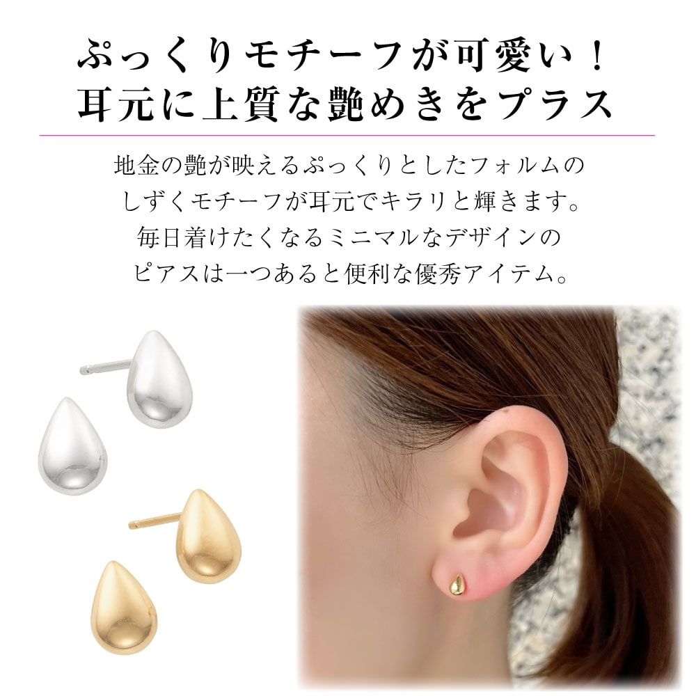 ぷっくりしたしずくモチーフが可愛らしいピアス。小ぶりながらもK18イエローゴールド/プラチナの艶やかな輝きがお顔周りにさりげない華やかさをプラスしてくれます。着ける人を選ばないミニマルなデザインは、どんなスタイルにも合わせやすくデイリーに大活躍。ギフトにも喜ばれるアイテムです。