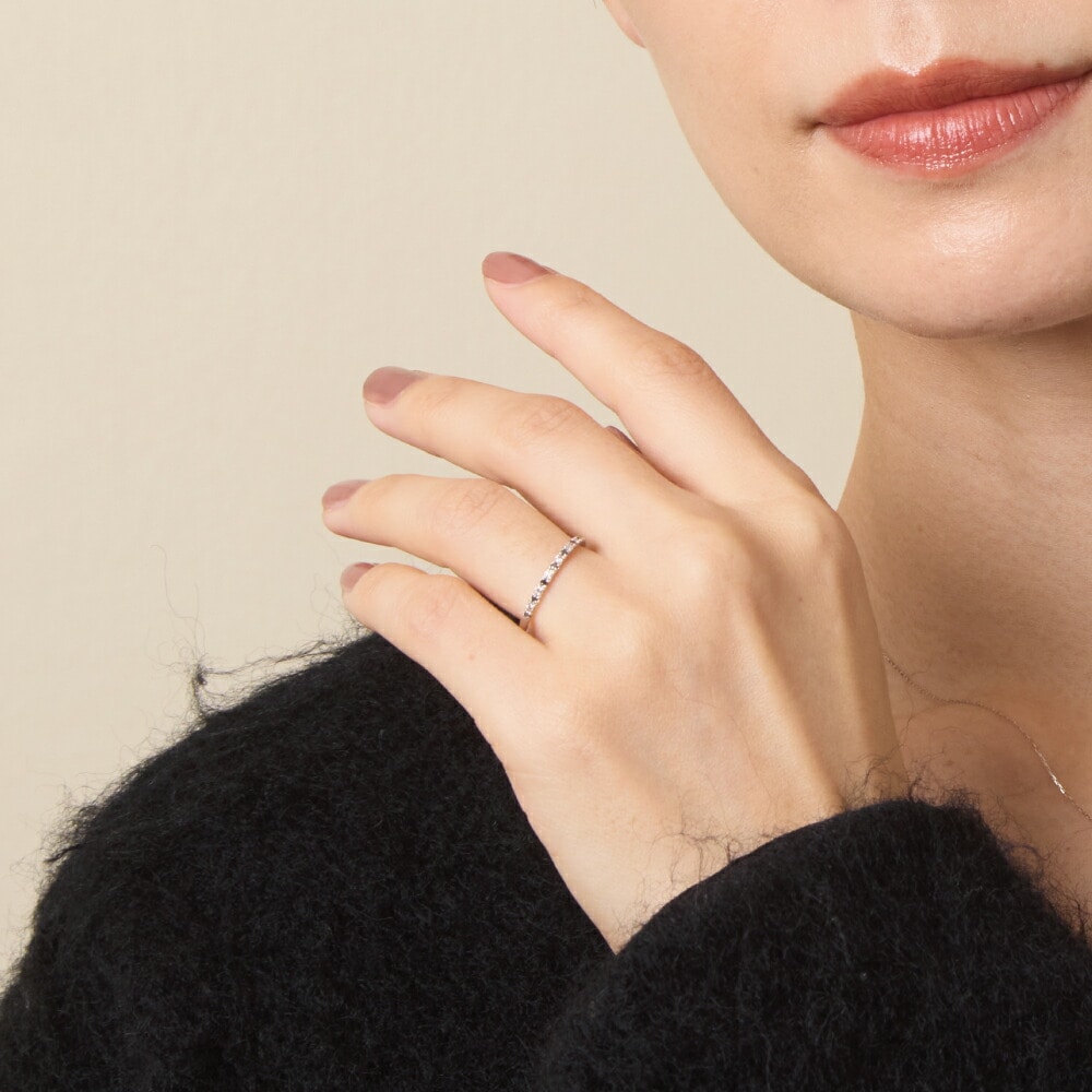 ホワイト×ブラックのコントラストの美しいリングです。落ち着いたブラックはオン・オフどちらのスタイルでも華やかに仕上げてくれます。