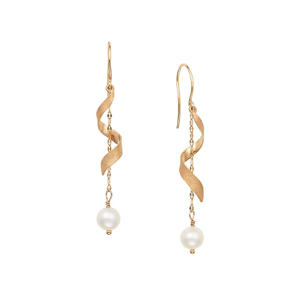 ツイストしたモチーフとパールが揺れるたびに顔回りを華やかにしてくれます。パール、チェーン、モチーフ3種の動きが美しいピアスです。