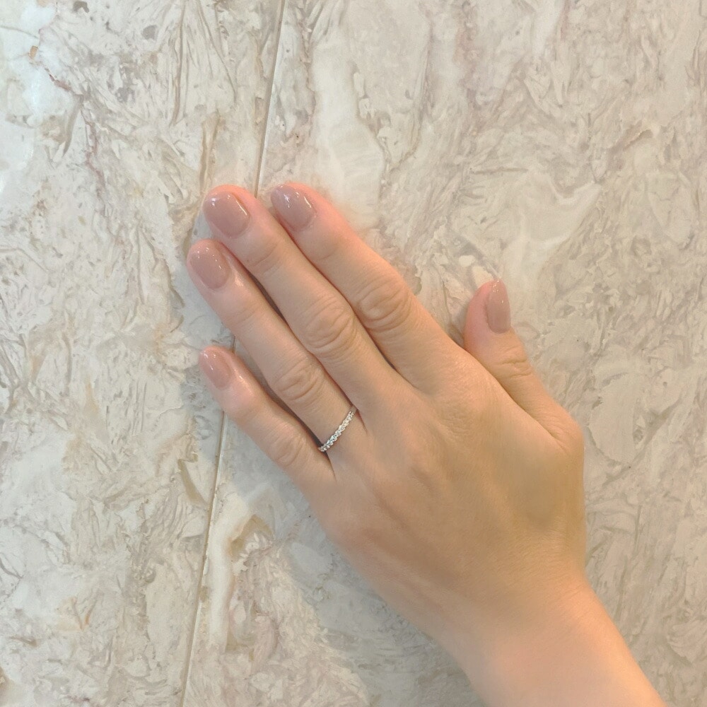 定番のハーフエタニティーリング。定番のアイテムだからこそ輝きの美しいハート&キューピッドダイヤモンドをセッティングしました。ハート&キューピッドにカットされたダイヤモンドは左右対称に研磨されているため、受け止めた光をまっすぐに放つことで輝きが強く現れます。特別な方へのギフトにもピッタリのリングです。