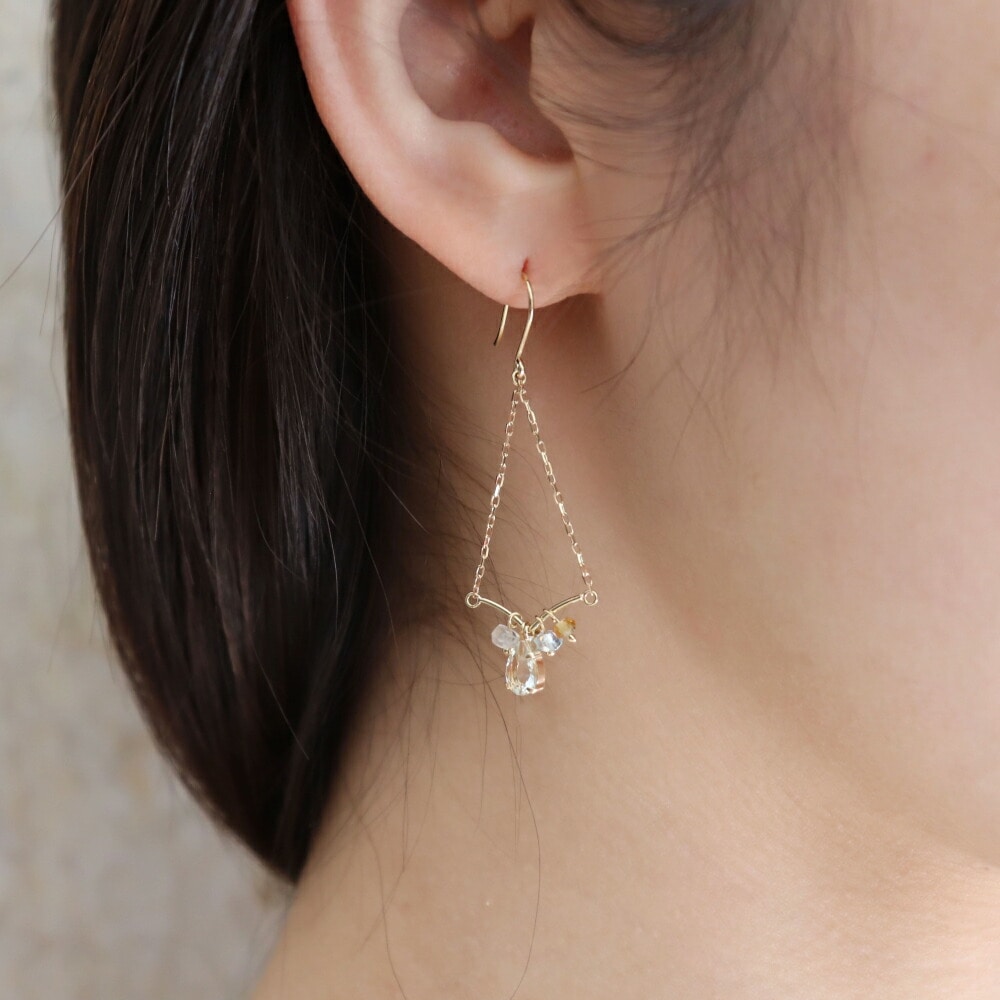 春らしい優しい色合いのカラーストーンを集めたピアス。揺れるたびにキラキラと輝き、お顔周りを華やかに彩ります。
