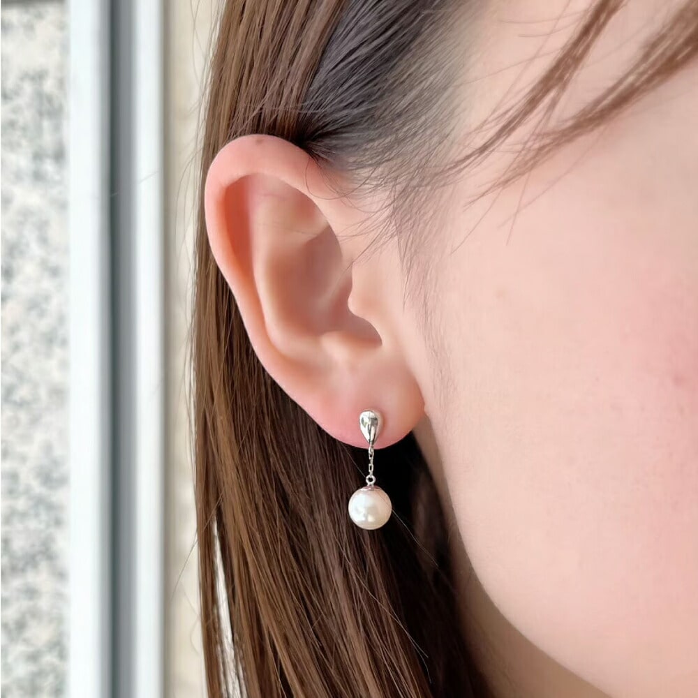 ホワイトゴールドの艶が映えるぷっくりしたモチーフの下で、ゆらゆらと上品な輝きを放つアコヤパールが視線を集めるピアス。トレンド感と上品さを兼ね備えたデザインで、幅広いスタイルに合わせやすいアイテムです。着け外しがしやすく安定感のあるスタッドタイプのピアスは、忙しいときでもサッと着けられる優秀アイテムです。