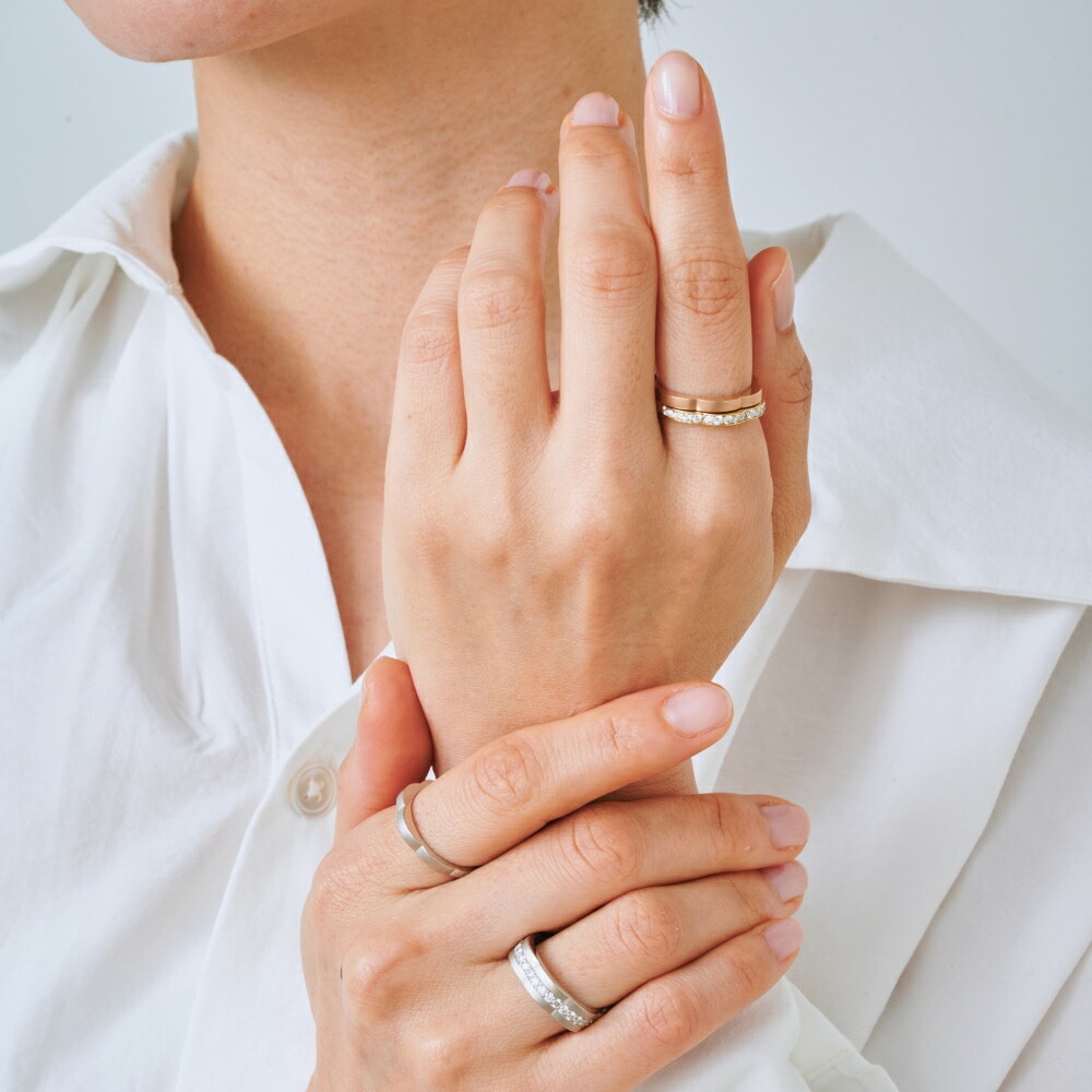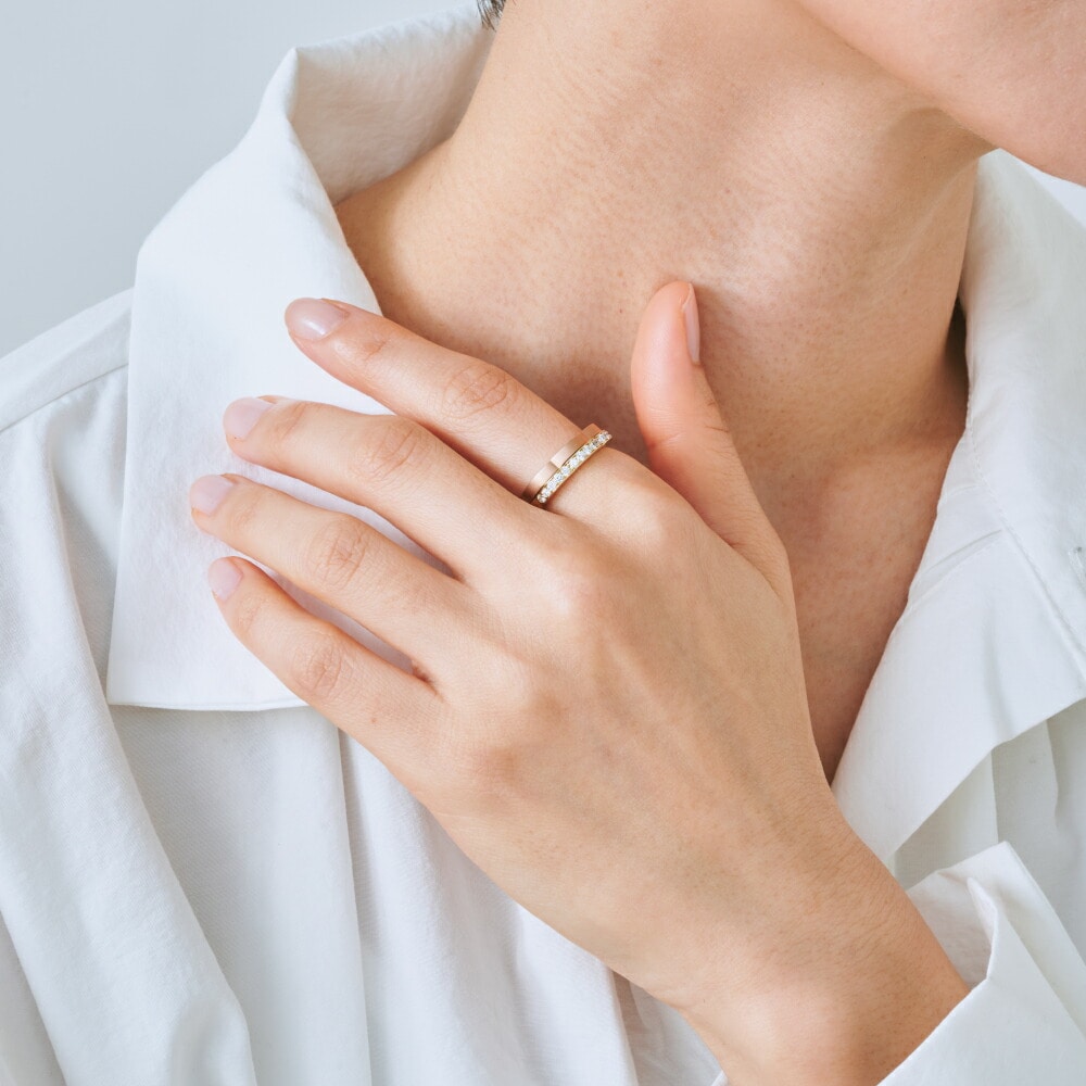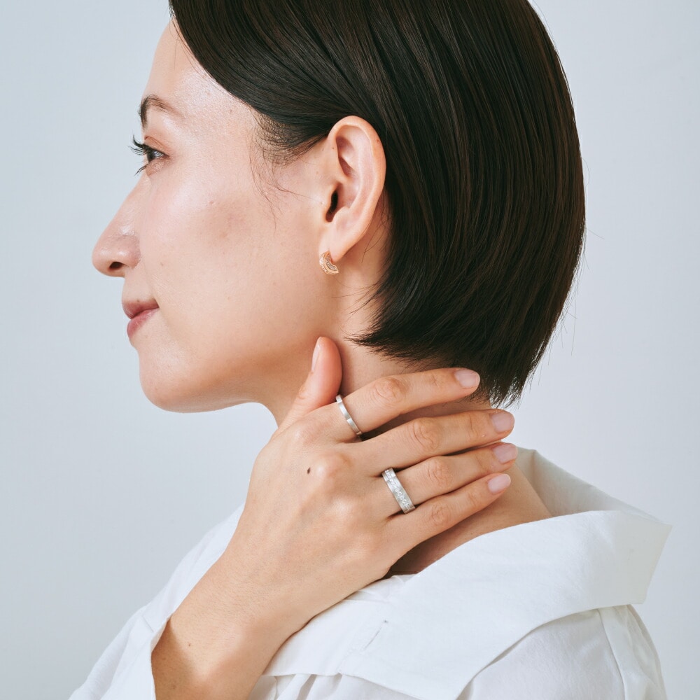 【ふくふくリング】◆フォルム:愛らしいフォルムの【地金ふくふくリング】まるで指もとから花が咲くような様子は、ご自身のぬくもりを通じて花が咲き、福や幸運を招く様子を表しています。ご自身や大切な方との心強いパートナージュエリーとしてご提案をお願いします。◆デザイン:同じフォルムの【ハーフエタニティーふくふくリング】や【Dカラーダイヤモンドふくふくリング】と何通りもの着け方をお楽しみいただけたる、カスタムジュエリーです。ご自身のベストな組み合わせを見つける楽しみや、ひとつひとつ買い足していただけるコレクションとして末永くお楽しみいただけるシリーズになっています。もちろんお手持ちのリングとの重ね付けもお楽しみいただけます!◆ホーニング:甘くなりすぎないように地金部分はマッドに仕上げ、大人の女性らしさを残しました。