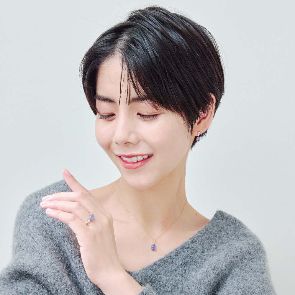 ミルキータンザナイトの優しい色とツヤが手元を優しく華やかに彩ります。タンザナイトには、前向きな気持ちになり、成功へと導いてくれる宝石として人気です。大切な時に着けたいアイテムです。ネックレス・リング・ピアスとセットの展開です。