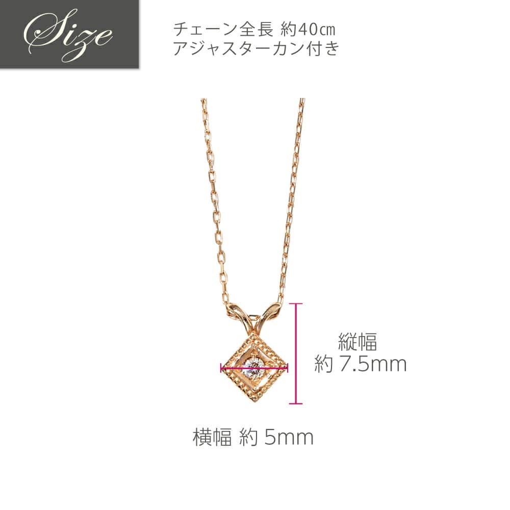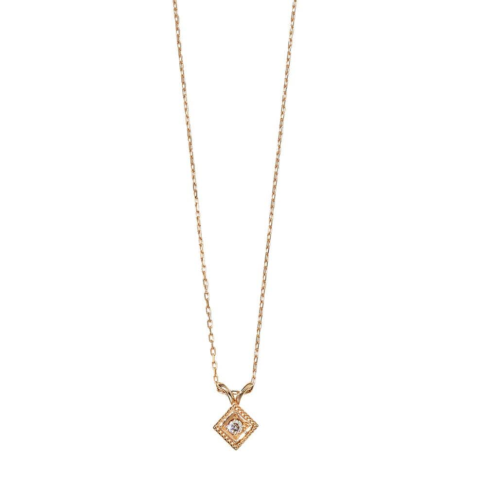 小粒ながらも輝きを放つダイヤモンドと繊細な地金の模様が印象的なネックレスです。ご自身へのご褒美や大切な方へのギフトにもお勧めです。