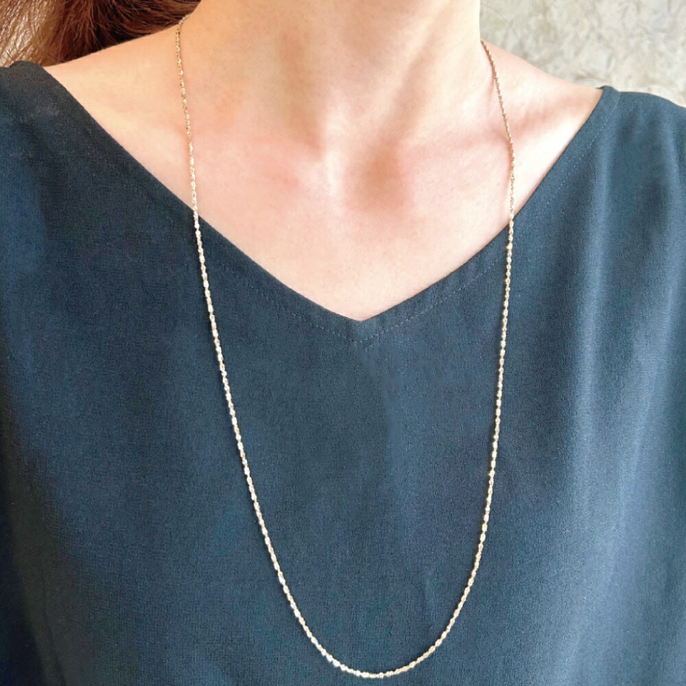 【EARTH GOLD】(アースゴールド)ベリテオリジナルカラー大地から恵みを受けた力強く美しいカラーのゴールド洗練された輝きを放つ特別なゴールドは上品で気品に満ちた色合いで大人の女性を優しく包み込んでくれます。深みのあるアースゴールドは今までのイエローゴールドやピンクゴールドとは一味違い、落ち着きがあり着ける方に安心感を与えてくれます。地金をギュッと隙間なくプレスすることで、どの角度から見ても同じような輝きのエクラチェーン