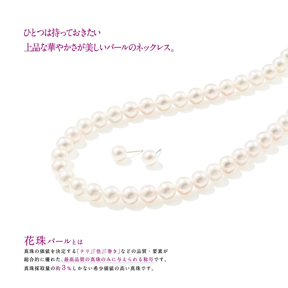 ◆パールの品質と価格のメリット:花珠品質の、『テリ』が魅力のアコヤパールアコヤパールの相場高騰が著しい中で、ベリテのために以前の相場のままで特別に提供していただきました。