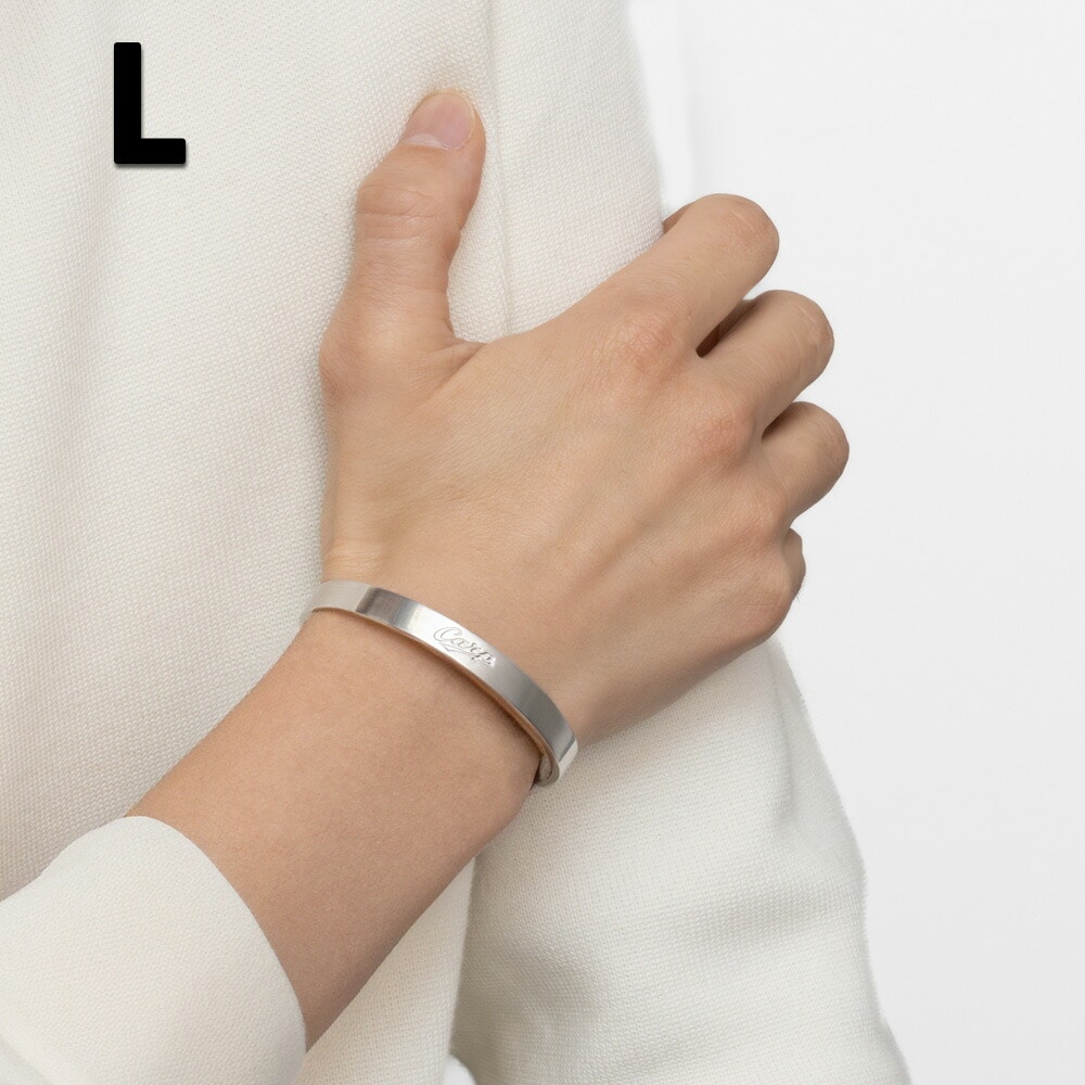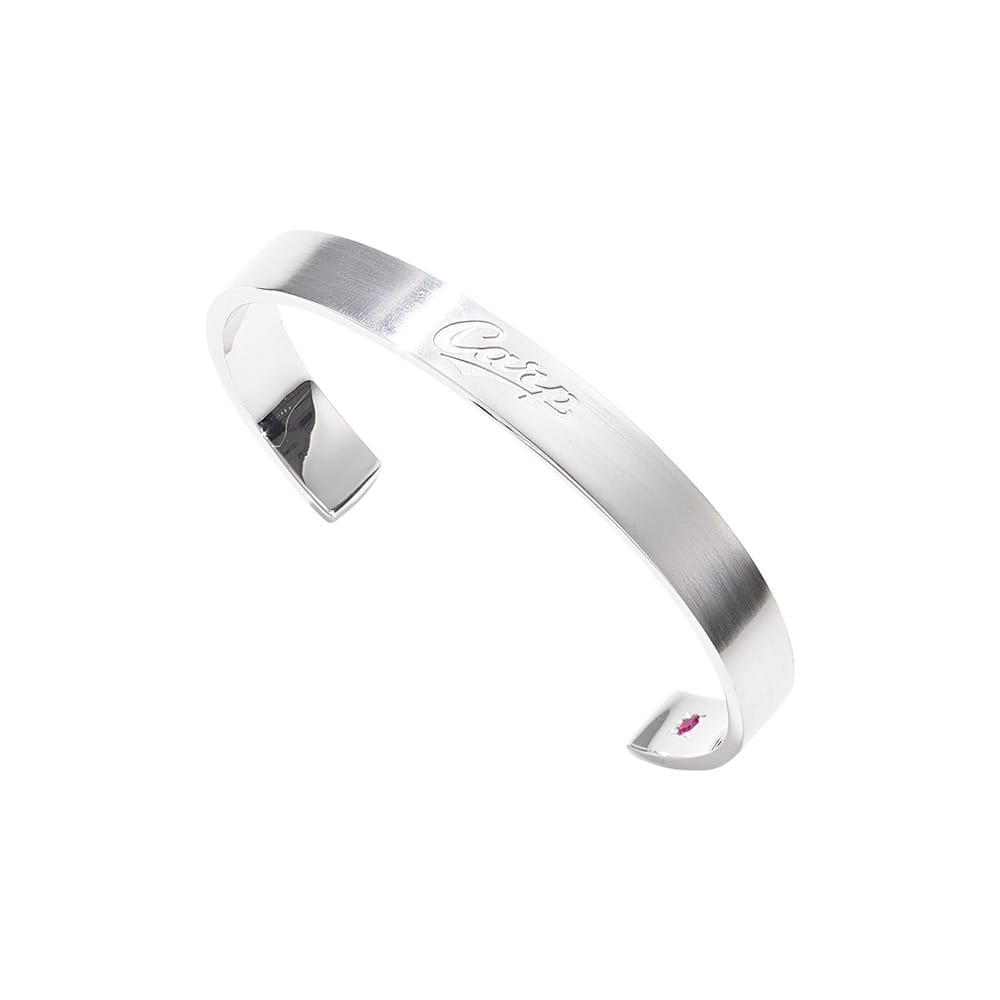 広島東洋カープ承認商品です。艶消し加工がされた本体に輝く球団ロゴマークが刻印された、シンプルながらも存在感があるバングルです。内側に入っているシンセチックルビーが着けている自分だけの秘密なポイントです。