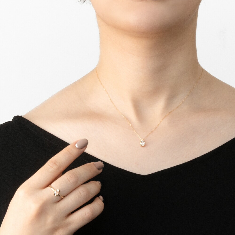 虹色に輝くフェルスパーは「希望」「幸運」の石言葉を持ち、新しい季節に着けたくなるアイテムです。石の輝きがより綺麗に映えるWGと地金の色と石の色の対比が美しいYGの2種を用意しました。ネックレス・リングのセットの展開です。