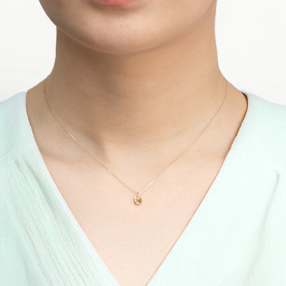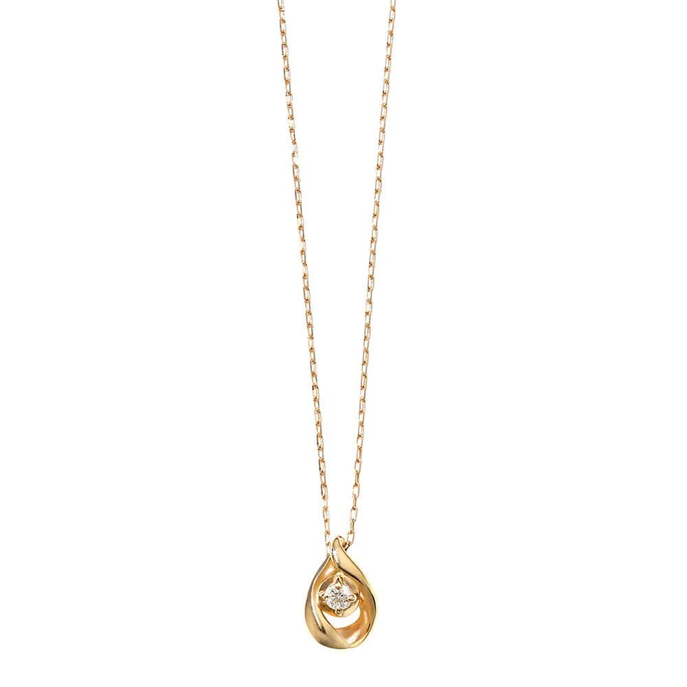 しなやかな曲線を描いたしずく型モチーフに、ダイヤモンドのきらめきを添えたネックレス。シンプルでベーシックなデザインはファッションやシーンを選ばずお使いいただけるネックレスです。