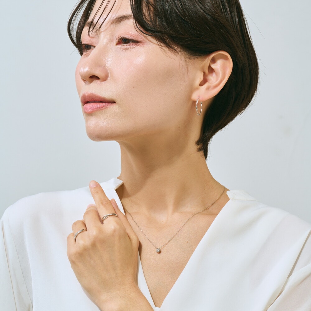 ダイヤモンドのラグジュアリーな輝きが楽しめるリング。スタイリッシュなデザインでコーディネートを一気に華やかに仕上げてくれます。重ね付けもオススメです。