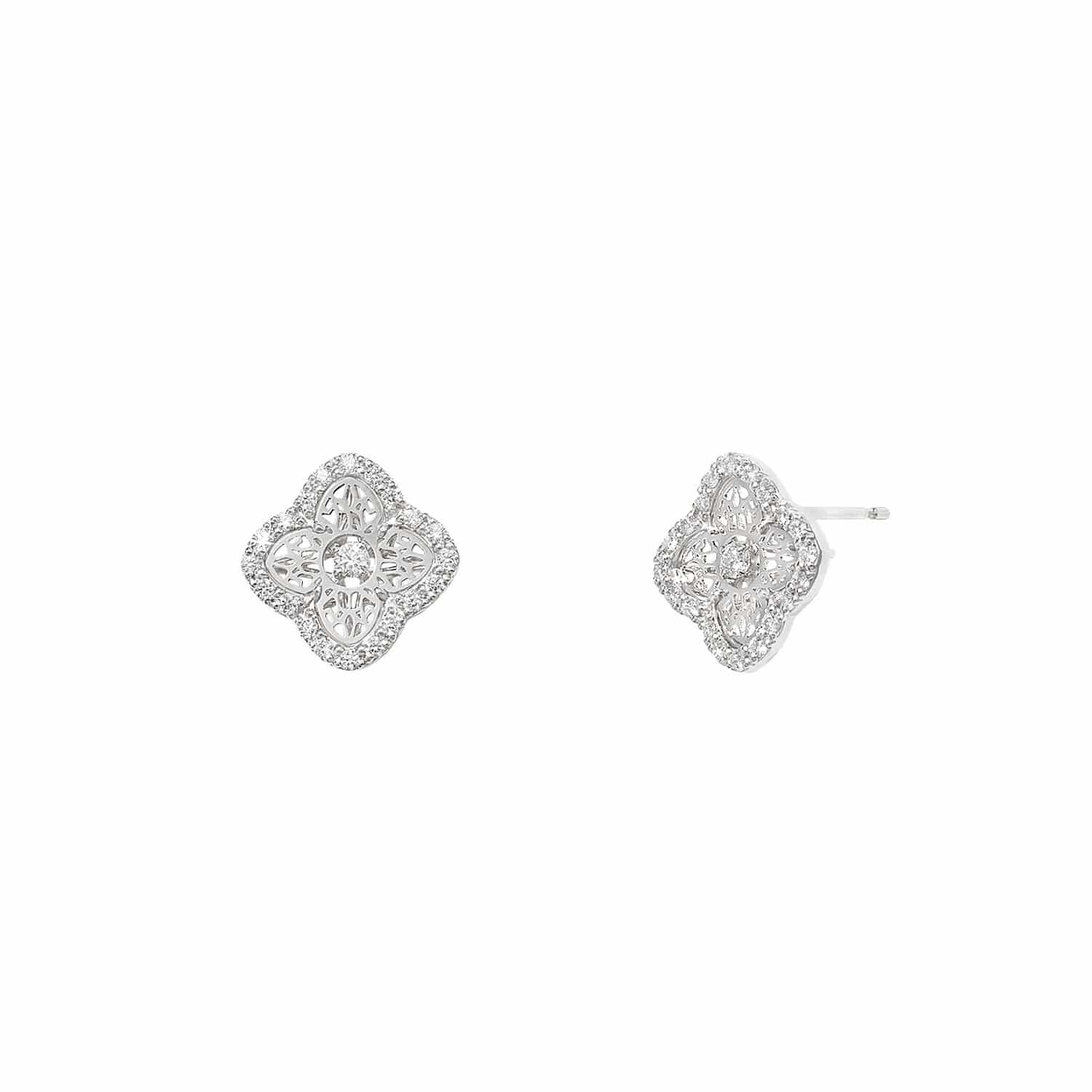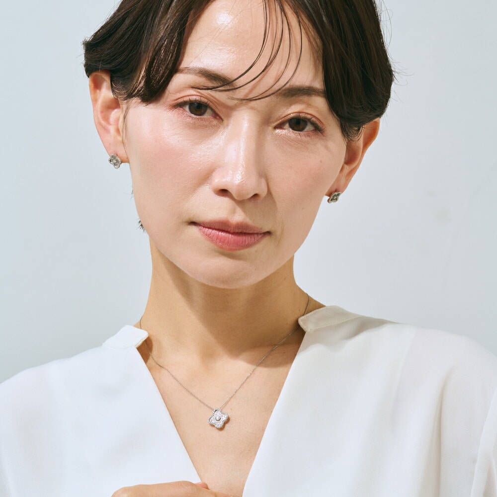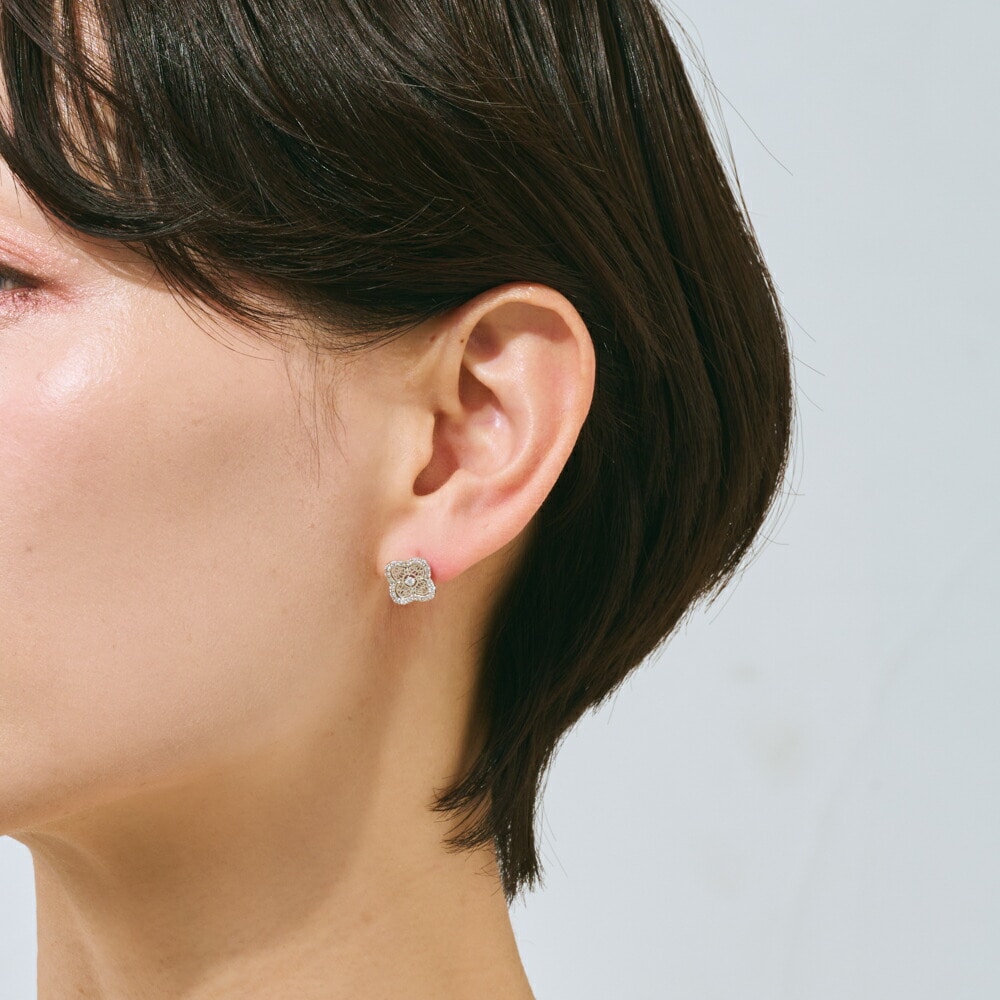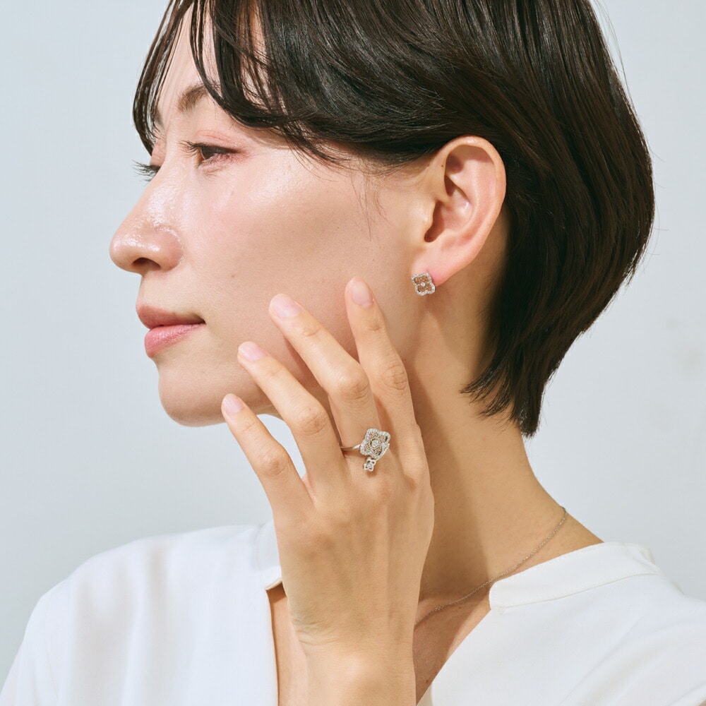 デザイン:幸福を象徴するシンボル『クローバー』幸運を運んでくれるラッキーモチーフをベースに「Heart&cupid」を組み合わせたモダンなデザイン人々に愛され続けるシンボルモチーフと、ハート&キューピッドダイヤモンドの輝きが、美しさと愛らしさを兼ね備えたピアス裏のデザインにもこだわり、光の形になぞらえてアイコンのテーマでもある希望の光があなたを照らすというイメージで仕上げました。