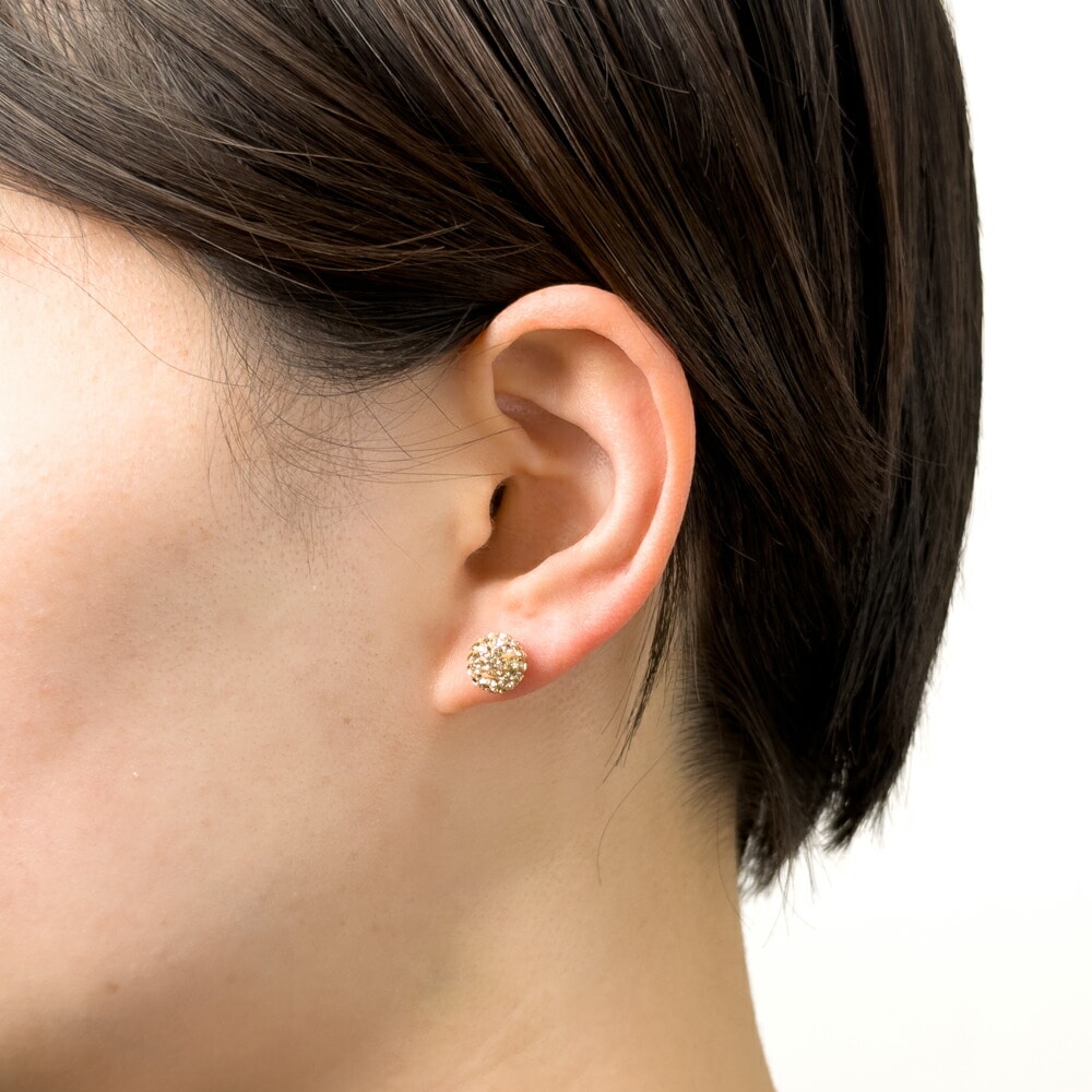 キラキラと輝くミラーボールのピアスです。このピアス一つでコーディネートが決まります。肌なじみの良いシャンパンカラーは、上品な印象です。