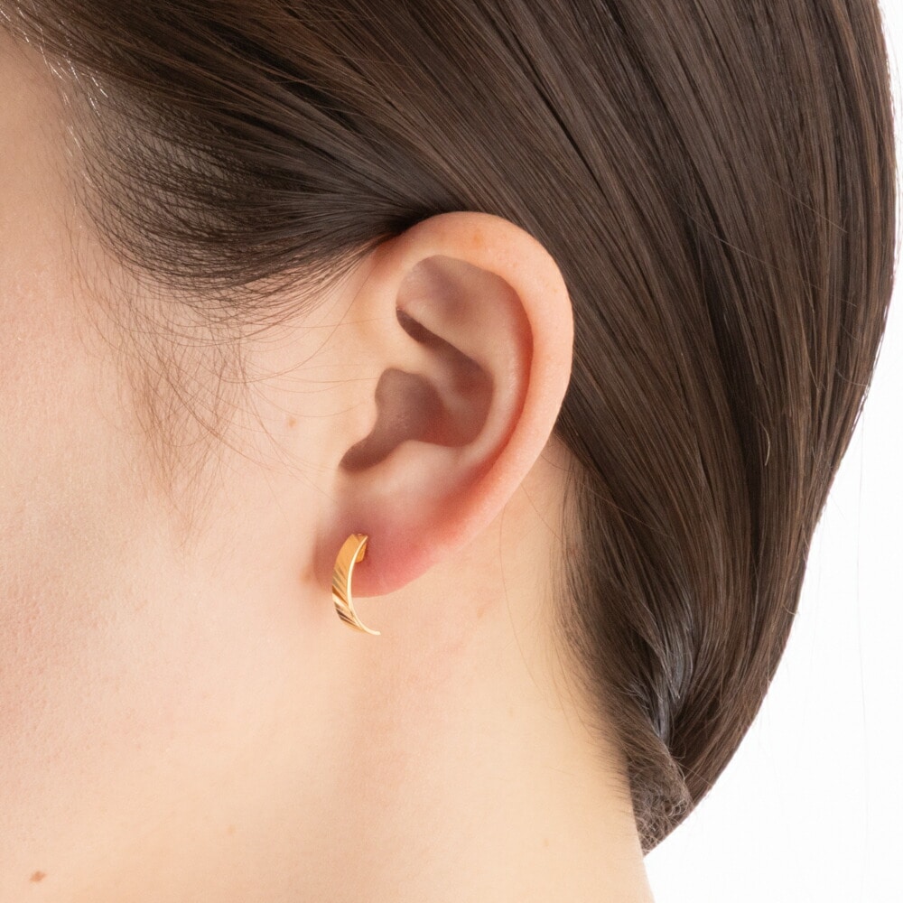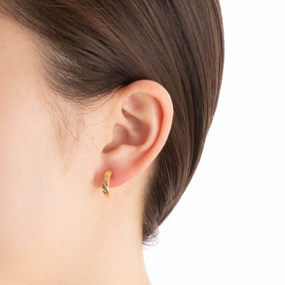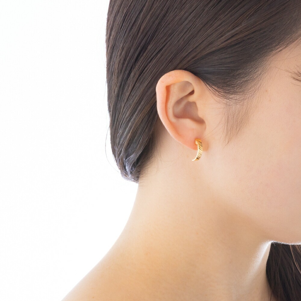 斜めのカットを施したピアス。光と影が織りなす繊細な輝きが、お顔周りを洗練された印象に仕上げてくれます。