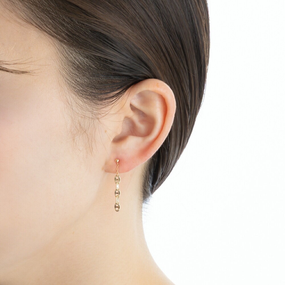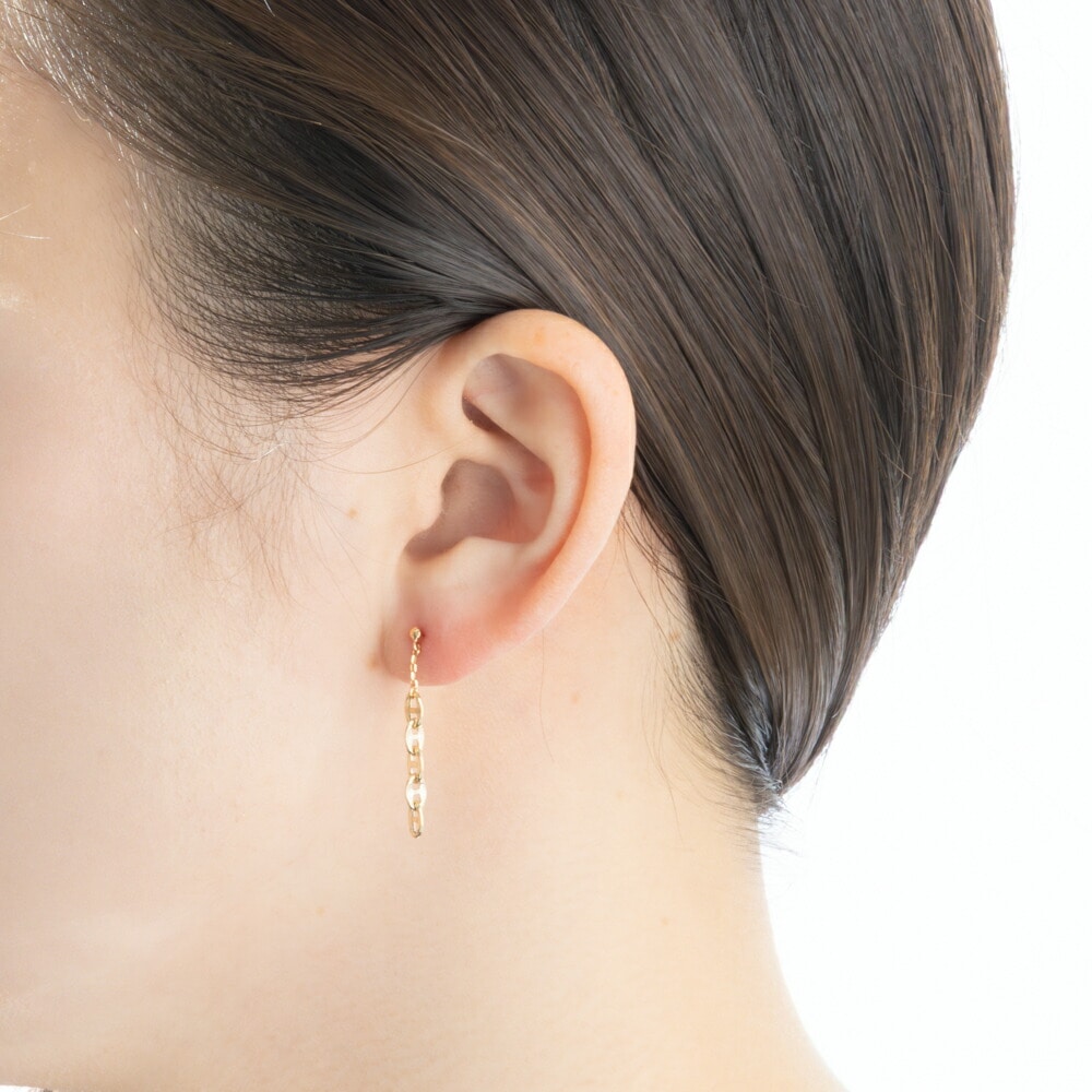 人気のチェーンピアス。様々なスタイルに合わせやすい程よいサイズ感です。つけるだけでいつものコーディネートをより一層素敵にしてくれます。
