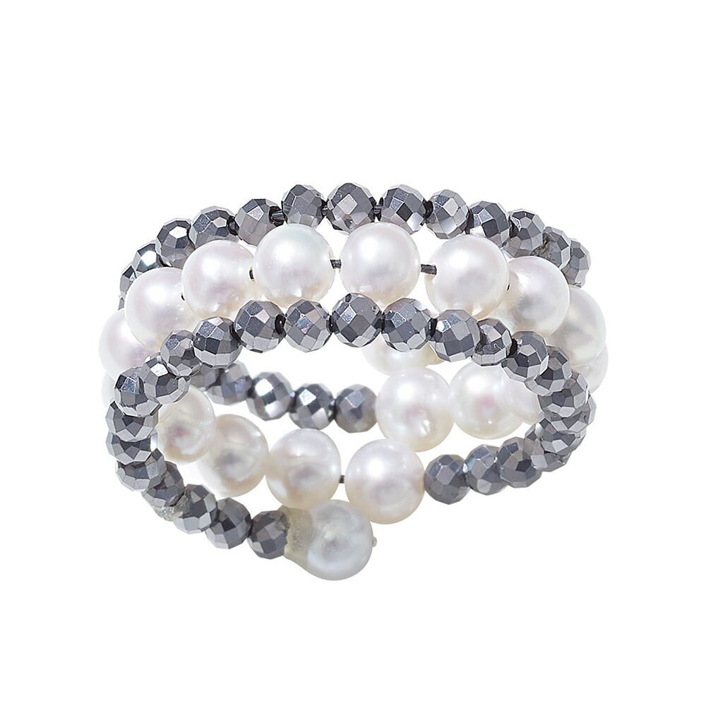 テリが良く、丸い形の淡水パールと人工鉱石のテラヘルツを使ったフリーサイズのリングです。形状記憶ワイヤーを使用しているため、バネのように伸び縮みしますので、お好みの指に巻き付けてお楽しみいただけます。◆テラヘルツ:水晶などを高温で溶かし、高純度のケイ素を抽出して再結晶化した人工鉱石です。テラヘルツ鉱石は、1秒間におよそ1兆回も分子振動するテラヘルツ波を放出し、健康や美容の面で大きな効果をもたらすとされてます。エネルギー循環を良くするパワーストーンとも言われており、不思議な力を持つ石として、世界各国のさまざまな分野で研究が進められているようです。