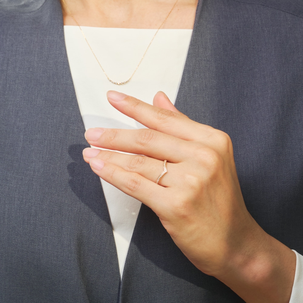 ブイモチーフのリングは指を美しく長く見せてくれます。